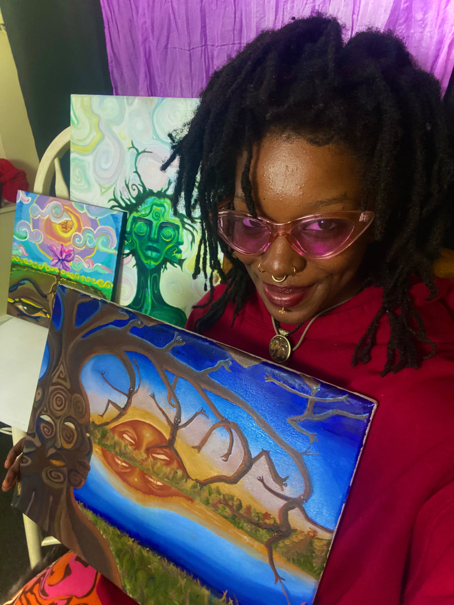 My name is Maren Yolovia (Lovi) Wright-Kerr, also known as afrOdelic. I am a Caribbean-raised, Baltimore-based multidimensional creator, DJ, and event curator. I make vivid, afro-surreal acrylic and digital, paintings, drawings, poetry, animations, and sound based art that explores and reactivates ancient connections to our inner and outer worlds. :)